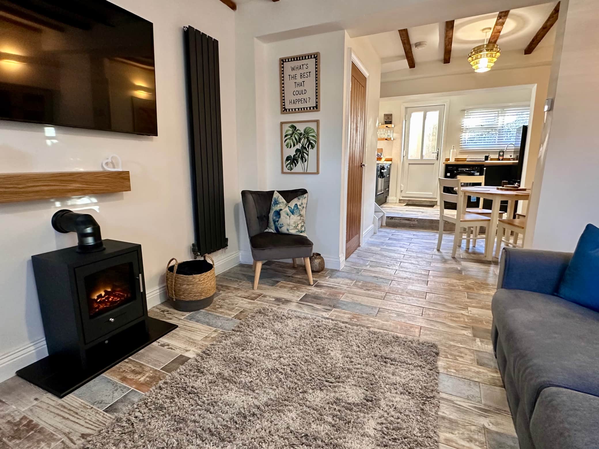 Jasmine Cottage is a beautifully renovated one-bedroom retreat in the heart of Audlem. Blending cottage charm with modern comfort, it features a cosy lounge with beams and a sofa bed, a stylish kitchen, a calming bedroom and a spa-like bathroom. Steps from pubs, cafés and canal walks, it’s the perfect base for a relaxing countryside escape.